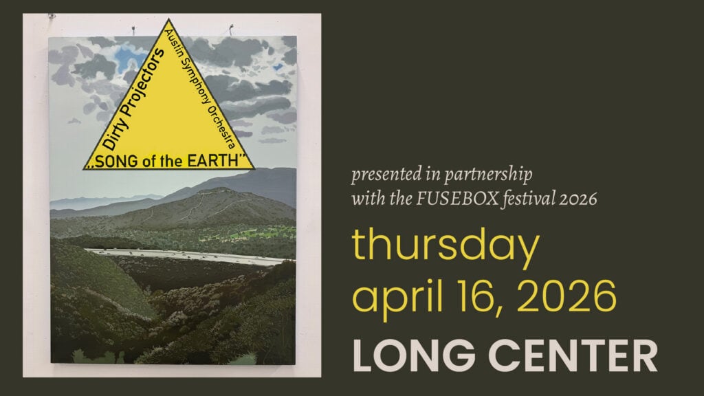 So Austin is a special place for Dirty Projectors, and we’re super psyched to be bringing this music to the Long Center. Song of the Earth is kind of an anthropocene landscape poem, and I can’t help but feel a real sympathy between the city and the song: the hugeness of it all, the never-ending sky, the rolling hills of the balcones escarpment, the inching traffic along Ben White Boulevard.